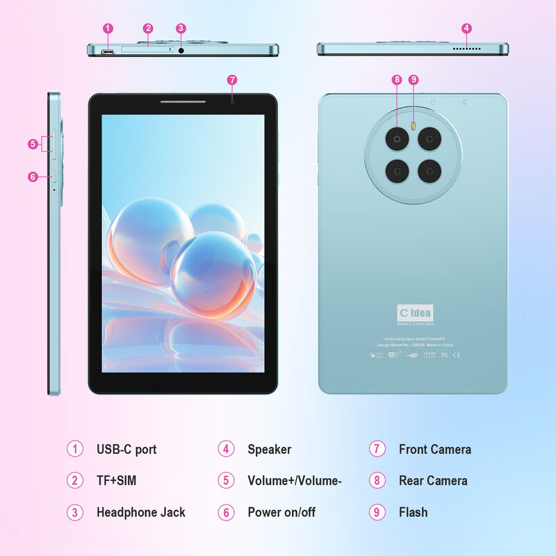 Description du produit:Nous vous présentons le C idea CM936, conçu pour élever votre expérience numérique à de nouveaux sommets, avec un puissant Snapdragon QT615 8*CortexTm-A53 4*1.7GHz+4*1.0GHz et 8G de mémoire DDR,Cette tablette assure un multitâche sans heurts et une performance fluide pour toutes vos tâchesAvec un écran IPS spacieux de 8 pouces et un GPU MP2 ARM Mali-400, profitez de visuels époustouflants et d'expériences de jeu immersives.et les médias avec facilité grâce aux généreux 512 Go de stockage EMMCRestez connecté en déplacement avec le Wi-Fi haut débit et la prise en charge optionnelle 2G/3G/5G, et capturez chaque instant avec la caméra arrière 8MP.,Doté d'une batterie de 8000 mAh pour une alimentation durable, le CM817 AIR est le meilleur compagnon pour le travail.le divertissement, et tout entre les deux.